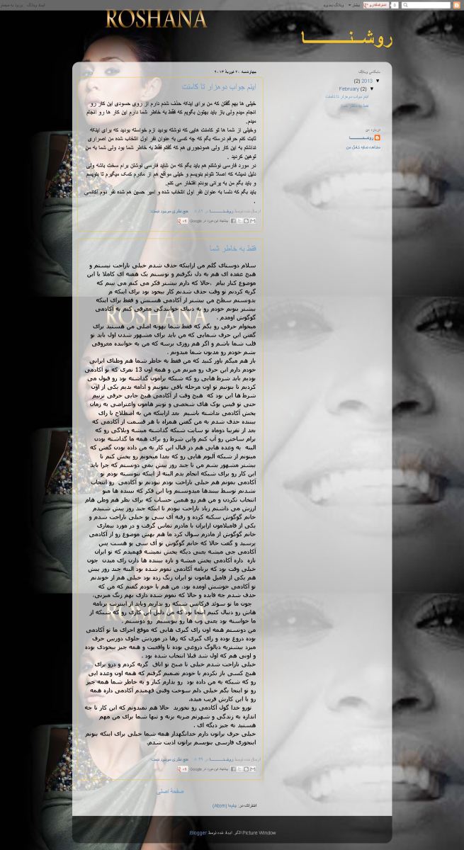 روشنا در وبلاگش می نویسد: «وقتی فکر می کنم می بینم که گریه کردنم در وقت حذف شدنم بی خود بوده برای اینکه می دونستم سطح من از آکادمی بالاتر بوده و برای معروف شدن در دنیای خوانندگی به آکادمی آمده بودم.»