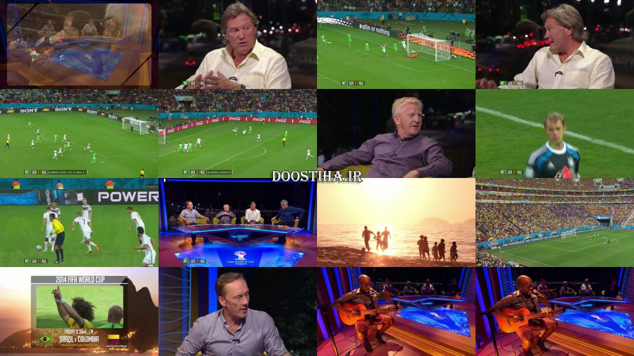 این مسابقه که از مرحله یک هشتم پایانی رقابت های فوتبال جام جهانی 2014 برگزار شد در وقت قانونی بازی مساوی و در وقت های اضافه با نتیجه دو بر یک به سود تیم ملی فوتبال آلمان پایان یافت. خلاصه بازی که شامل صحنه های حساس، گل های مسابقه میباشد، با کیفیت 720p با گزارش انگلیسی تقدیم به علاقمندان میگردد.